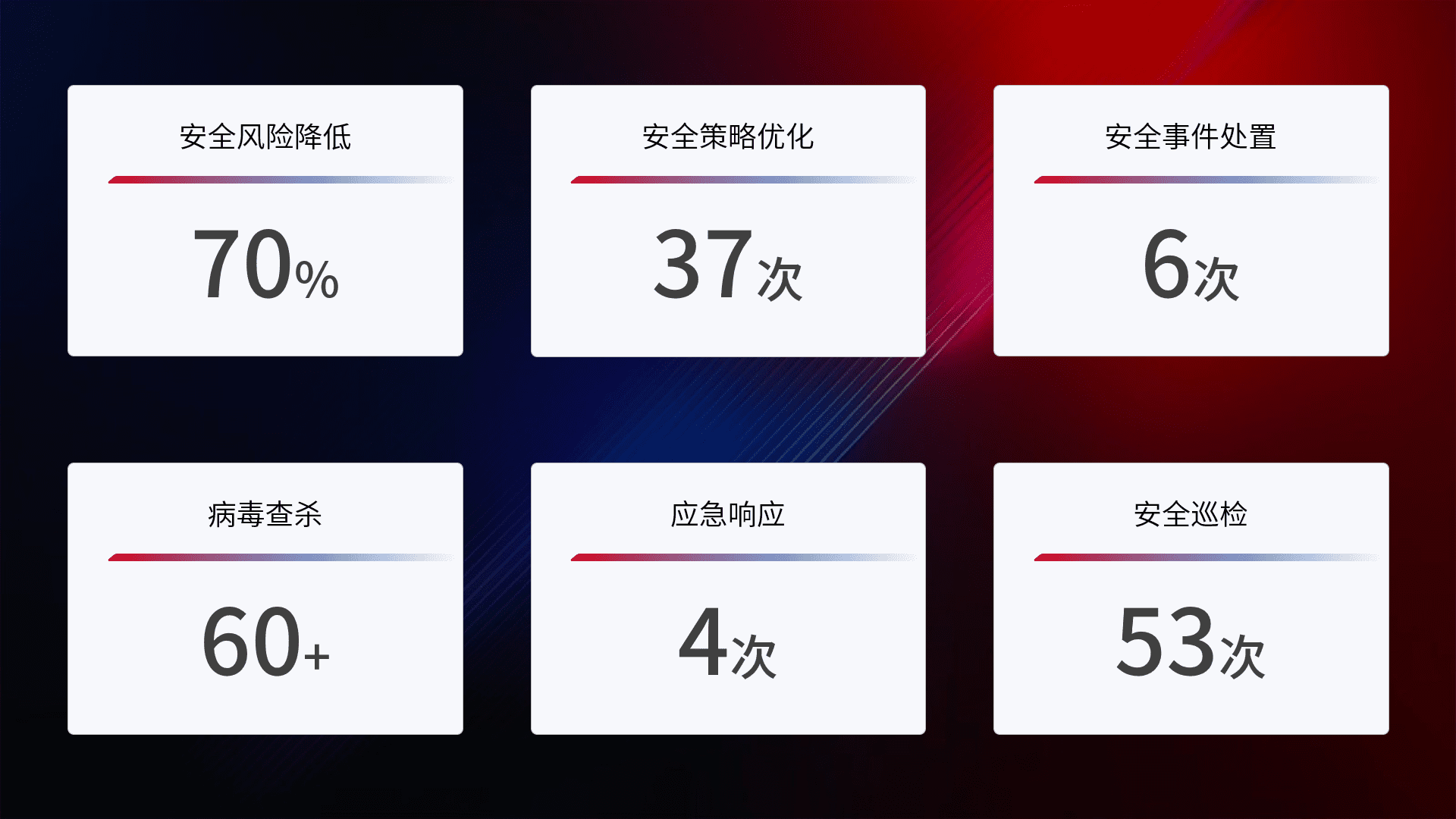 提供全面的安全事件报告体系,,包括处置报告、、周报、、季度和年度总结,,,结合持续监控,,,,帮助客户深入了解网络安全状况。。