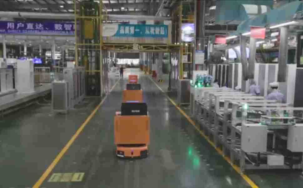 为车载冰箱物流配送打造的智能解决方案,,包含产中物流通过潜伏举升AMR搬运至线边,,,,产后成品物流智能仓储,,流程包含产中物流智能齐套入库,,,线边安灯叫料AMR智能配送至线边,,,,成品入库、、、出库,,,,通过无人堆高车机器人,,,,智能仓储管理替代人工作业管理,,,实现更高存储、、更高效率、、、更具柔性化的解决方案。。。